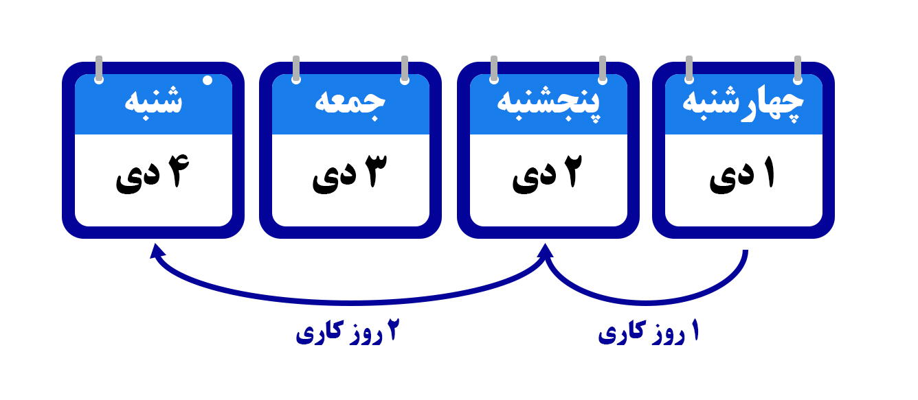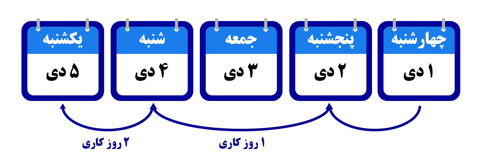 نکته 2 - روز های تعطیل رسمی و غیر رسمی روز کاری محاسبه نمی شود. مثال زیر را به دقت مطالعه فرمائید: فـرض کـنید: